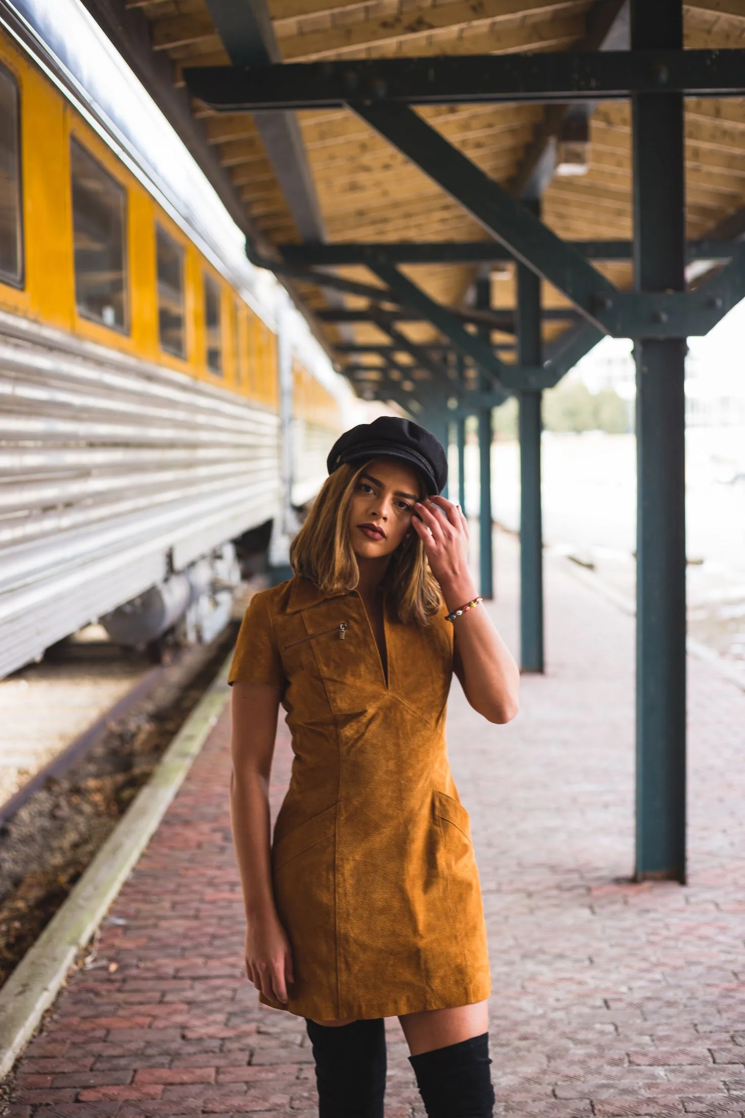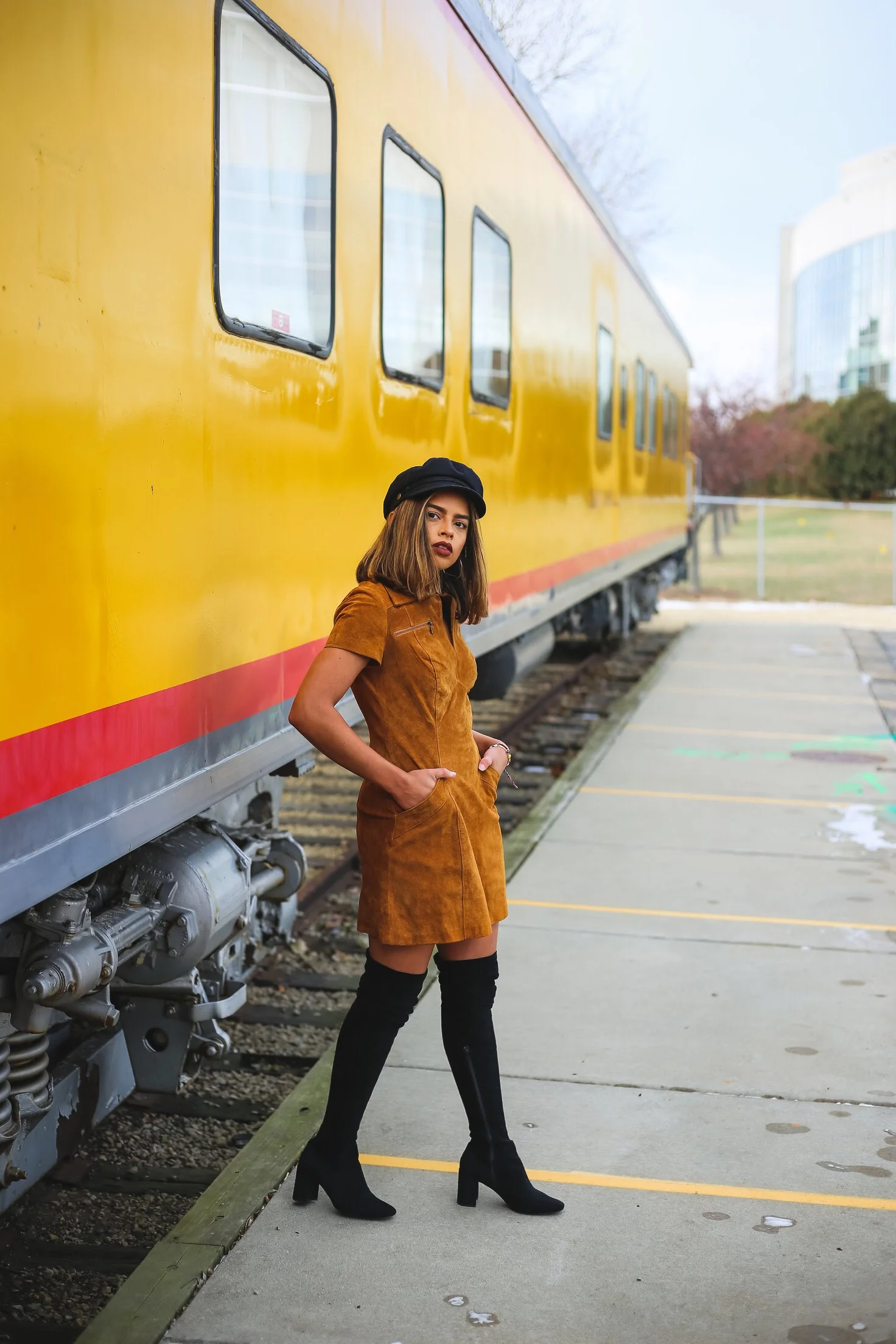 These days I have been able to remain motivated to seize the day! I think this comes from keeping in mind what is important to my inner health. By writing out my goals I have been able to keep a tunnel vision on what I want. A good friend would stress to me that it takes "baby steps" to reach our goals and this has been on my mind and I am learning to appreciate the process. The confidence shows with the looks I have been putting together and I am eager to post them soon! This suede dress is great for keeping warm, but paired with thigh high boots a great combination for any occasion. If you do not already have this style of hat, I think you should hop on the bandwagon because it is just great for when your hair just doesn't want to cooperate. I also think it is quite flattering because everyone I know that has one looks so cute with it! If you like this look, I have added some similar styles for you the check out at the end of the post! Thanks for stopping by!