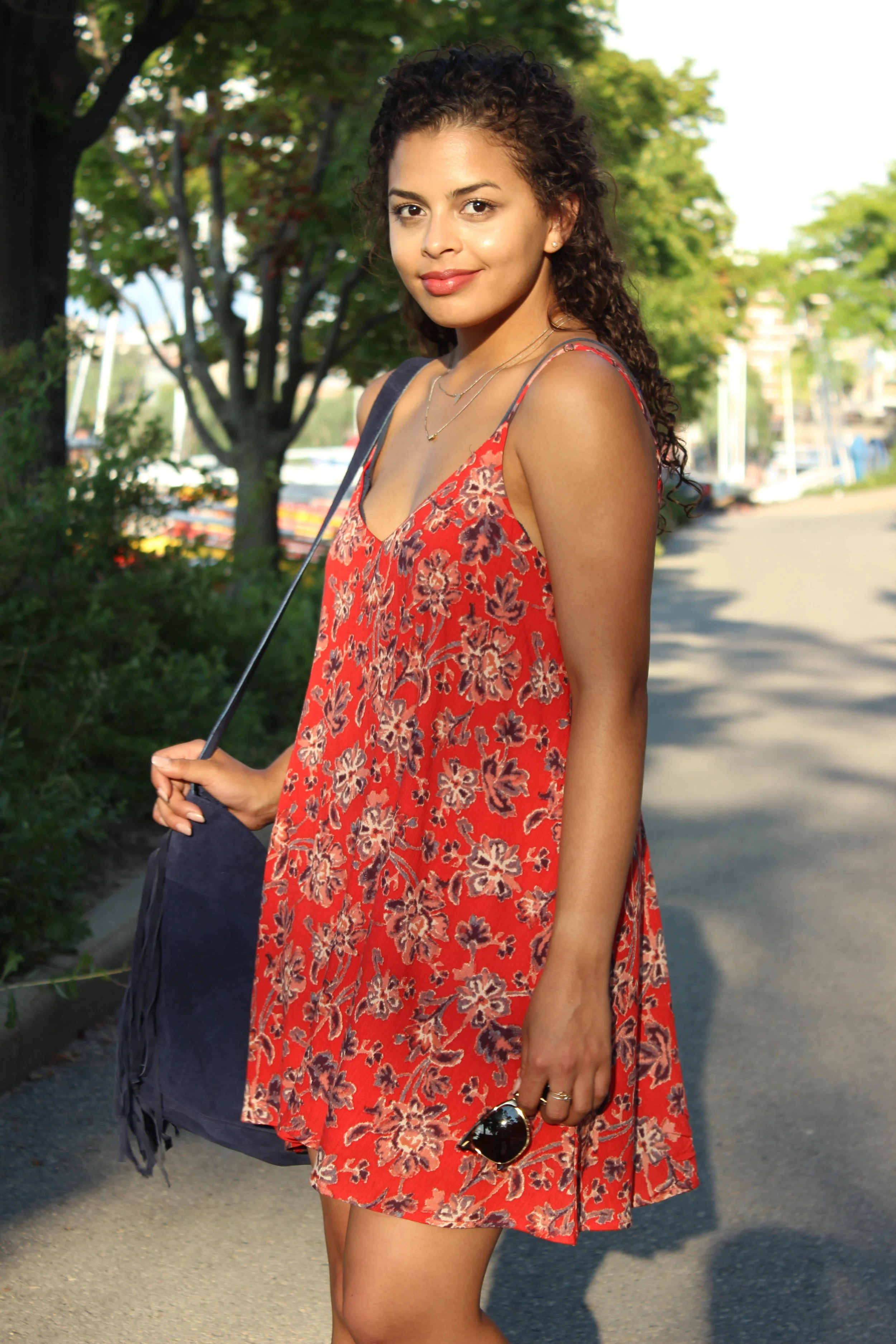 Summer is everything to me because it feels almost just like it would in the motherland, warm and filled with good vibrations. This gorgeous floral print will look great on just about everyone! This is especially true because of its breezy pull on silhouette that is effortlessly playful. Initially this was my main choice to wear for the Fourth of July, but decided on something simpler. Which I'm glad about because I just got this Ecote suede fringe bag that pairs beautifully with the Susana Printed Gauze dress and Bed|Stu sandals. I can easily see this being one of my everyday bags just because it is an ideal bucket size and I just love the subtle fringe details lining the sides! I love anything that is ready-to-wear like this already layered for you necklace from UO! Plus the mixing of metals makes it that much easier to pick out rings! I chose to stack my silver and gold infinity rings made by @foxand.thefawn that I wear just about every day. Now, time to enjoy this weather! Have a great day!